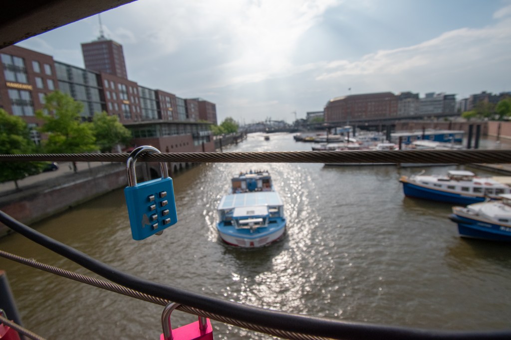 Our lock in Hamburg – accidentally bought this instead of a Heineken from a vending machine in the hostel, so left it on this bridge with the other locks.