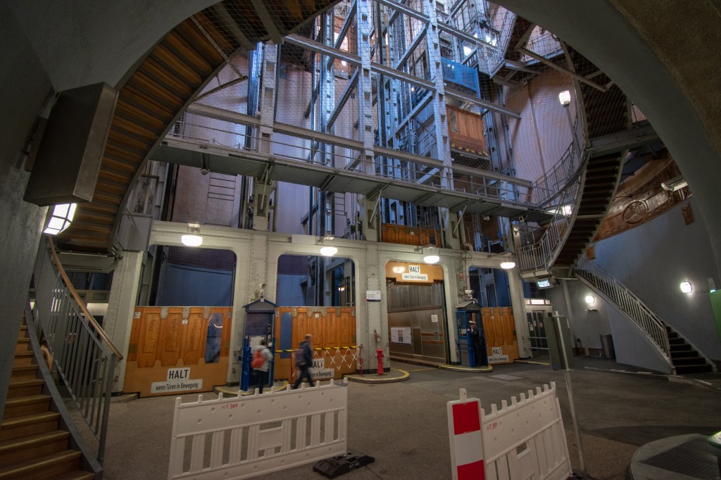Elbtunnel car elevators and shaft